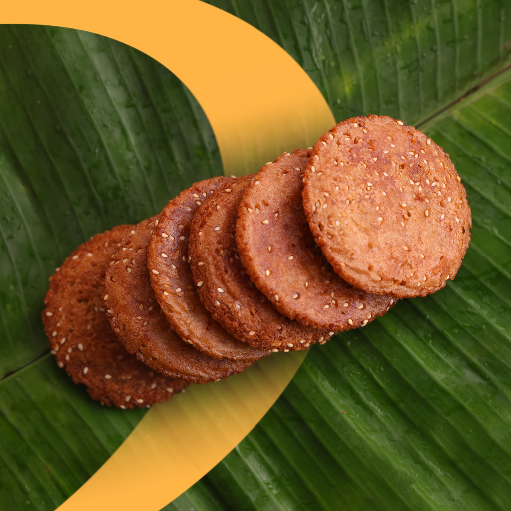 Every piece is handmade by Chittamma’s kitchen team using time-honored methods — sun-dried rice flour, slow-melted jaggery, and sesame seeds for that perfect touch.
