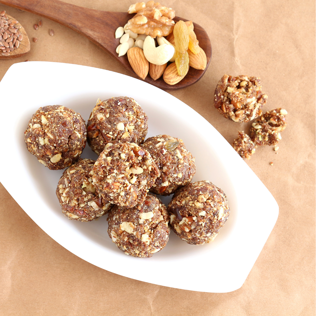 Ingredients: Almonds, cashews, dates, raisins, pistachios, dry coconut, ghee, cardamom.